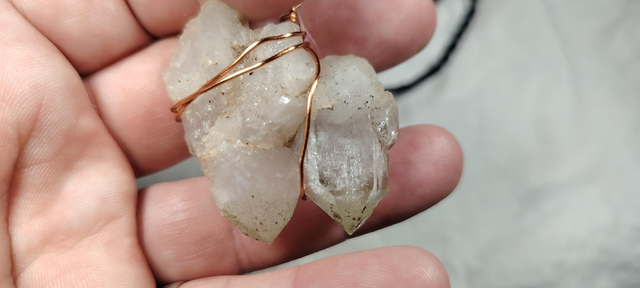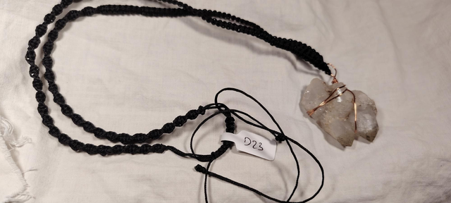 Collier nylon macramé réglable, 80 cm, pendentif en cristal de quartz serti fil de cuivre.