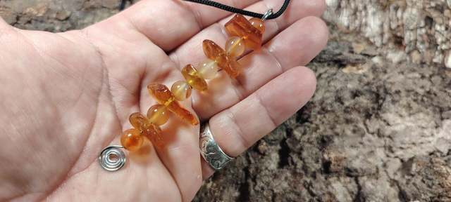 Collier nylon réglable, pendentif avec perles chips en ambre et perles en cornaline, serti acier inoxydable